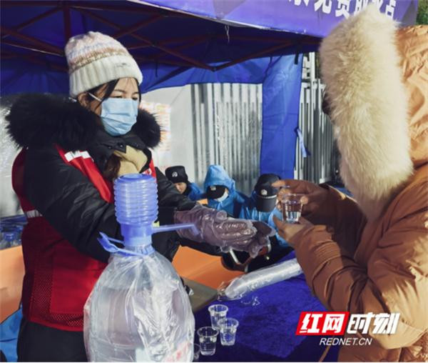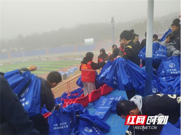 考虑到赛事中群众饮水的重要性,团队承担了四个免费水供应点的服务工作。每天开赛前四小时到达免费取水点开始备水、分装,确保观众入场时能第一时间喝到免费的水。来自湛江的球迷汉在接过饮用水时感叹:“我观看过很多赛事,但提供免费热水的很少见。这杯水不仅暖手,更暖心。”